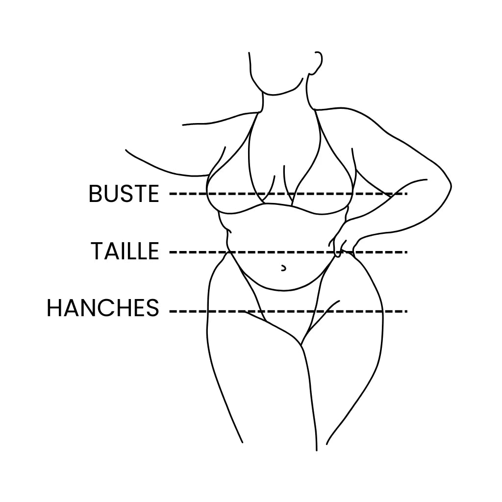 - Taille : à l’endroit le plus étroit de ton abdomen.